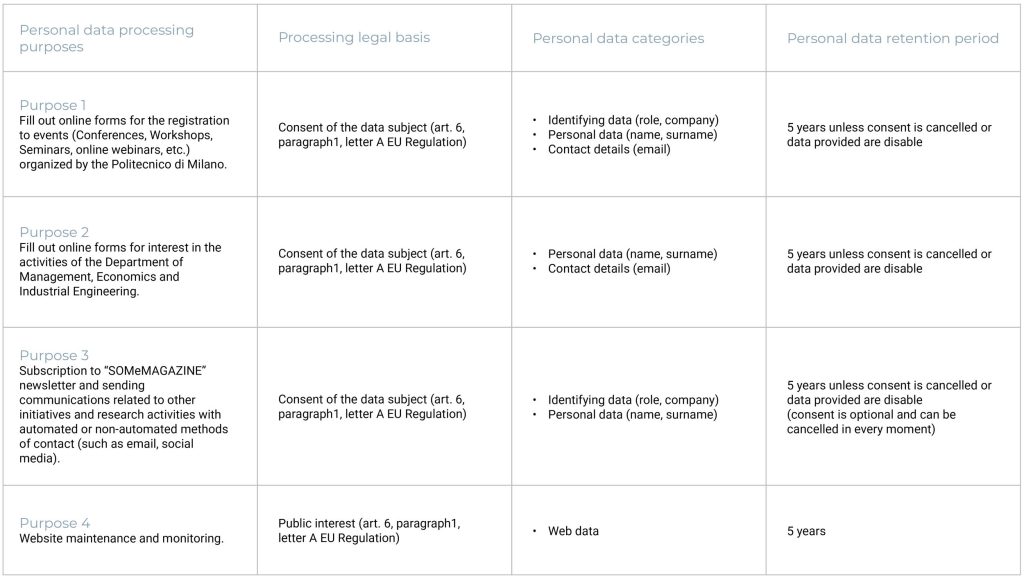 This privacy policy is for the https://www.som.polimi.it/ website and provides information to its users by electronic means.